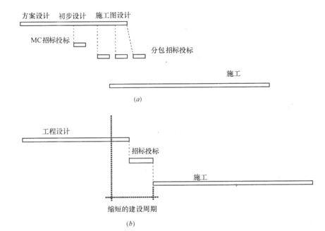 施工总承包模式的工作程序是:先进行建设项目的设计,待施工图设计结束后再进行施工总承包招标投标。而如果采用施工总承包管理模式,施工总承包管理单位的招标可以不依赖完整的施工图,当完成一部分施工图就可对其进行招标。施工总承包管理模式可以在很大程度上缩短建设周期。
