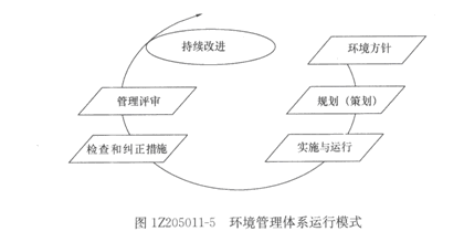 《环境管理体系要求及使用指南》(GB/T 24001--2004)是环境管理体系系列标准的主要标准,也是在环境管理体系标准中唯一可供认证的管理标准。该模式是由“策划、实施、检查、评审和改进”构成的动态循环过程,与戴明的PDCA循环模式一致的。