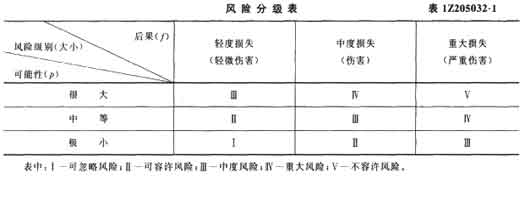根据上述的估算结果,可按表1Z205032—1对风险的大小进行分级。