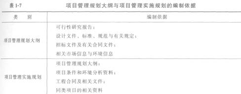 项目管理规划大纲与项目管理实施规划的编制依据见表1-7。