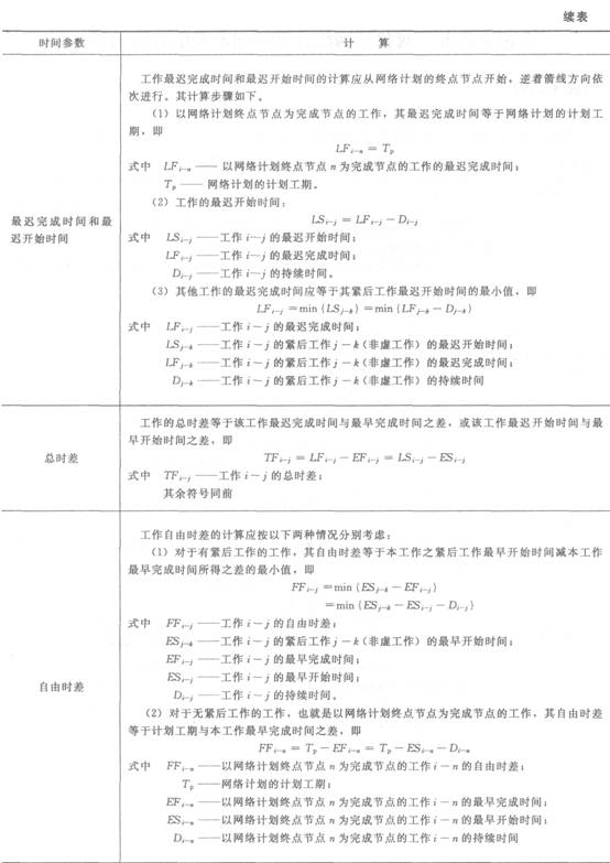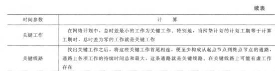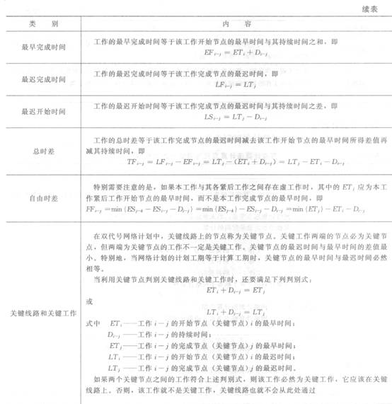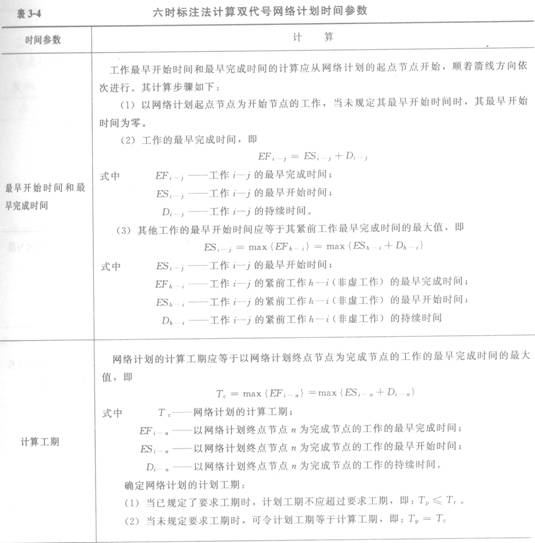 六时标注法计算双代号网络计划时问参数见表3—4。