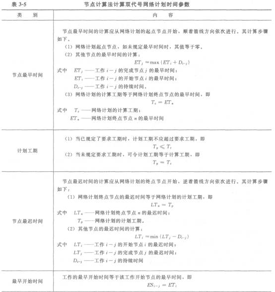 节点计算法计算双代号网络计划时间参数见表3—5。