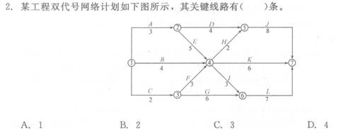 1.在某工程双代号网络计划中,工作N的最早开始时间和最迟开始时间分别为第20天和第25天,其持续时间为9天,该工作有两项紧后工作,它们的最早开始时间分别为第32天和第34天,则工作N的总时差和自由时差分别为( )天。