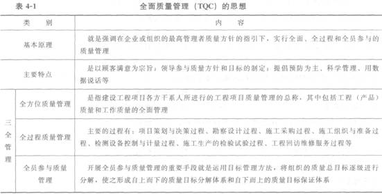 全面质量管理(TQC)的思想见表4-1。