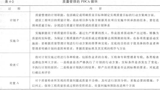 质量管理的PDCA循环见表4-2。