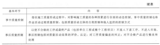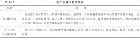 施工阶段质量控制目标;共同性依据;专门技术法规性依据;事前质量控制;事中质量控制;事后质量控制。