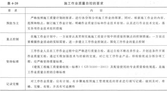 施工作业质量自控的要求见表4—20。