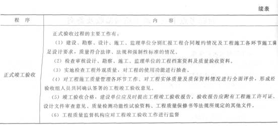 竣工质量验收的依据;竣工质量验收的要求;竣工验收准备;竣工预验收;正式验收的主要工作;建设工程竣工验收合格之日起15日内。