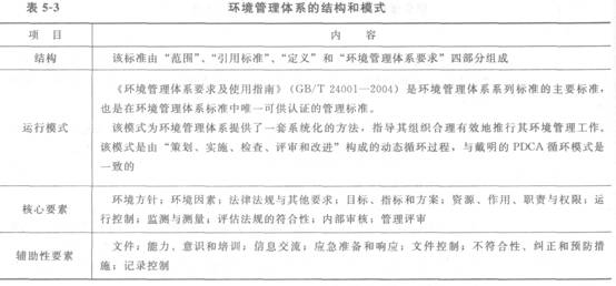 环境管理体系的结构和模式见表5-3。
