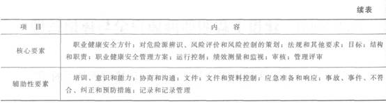 (2)分析判断职业健康安全管理体系的核心要素和辅助性要素具体包括哪些内容。