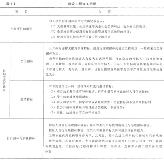 建设工程施工招标见表6—1。