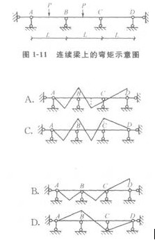 有一连续梁,受力如图1—11所示,则下列连续梁上的弯矩示意图中,正确的是( )。