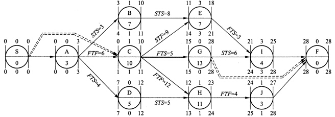 解析:计算该单代号搭接网络计划的时间参数,如图所示: