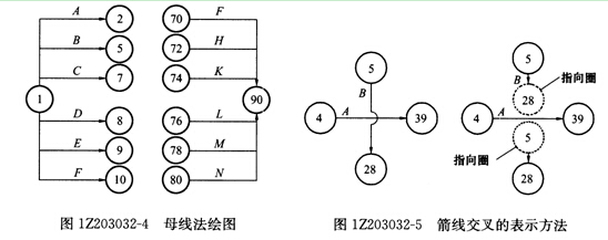 可使用母线法绘制(但应满足一项工作用一条箭线和相应的一对节点表示),如图 1Z203032-4所示。