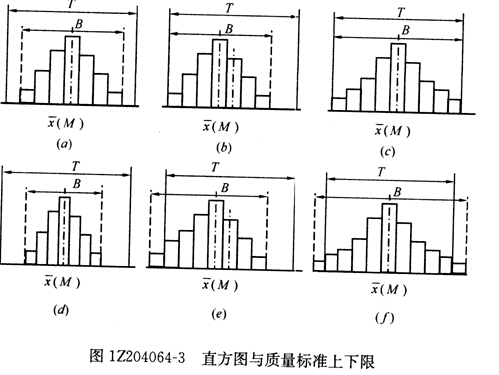 (1)所谓位置观察分析是指将直方图的分布位置与质量控制标准的上下限范围进行比较分析,如图1Z204064-3所示。