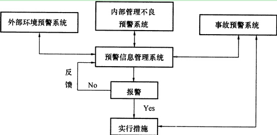 一个完整的预警体系应由外部环境预警系统、内部管理不良的预警系统、预警信息管理系统和事故预警系统四部分构成,相互关系如图1Z205022所示。
