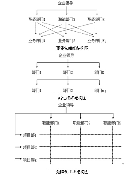 | 职能组织结构 | (1)每一个职能部门可根据它的管理职能对其直接和非直接的下属工作部门下达工作指令。 (2)每一个工作部门可能得到其直接和非直接的上级工作部门下达的工作指令,它就会有多个矛盾的指令源。 |