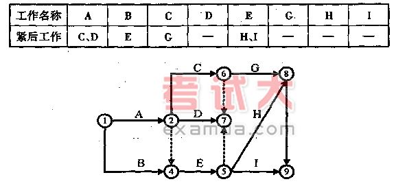 30、 根据下表给定逻辑关系绘制而成的某分部工程双代号网络计划如下图所示,其中的错误有(    )。