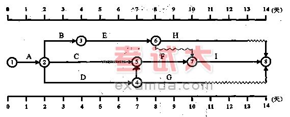 38、 在下图所示的双代号时标网络计划中,所提供的正确信息有( )。