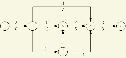 8、某分部工程双代号网络图如下图所示,则工作D的总时差和自由时差依次为( )