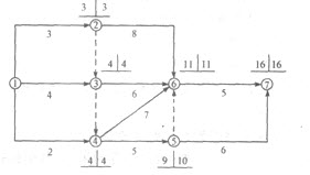 第86题 某工程双代号网络计划如下图所示,图中已标出每个节点的最早时间和最迟时间,该计划表明( )。