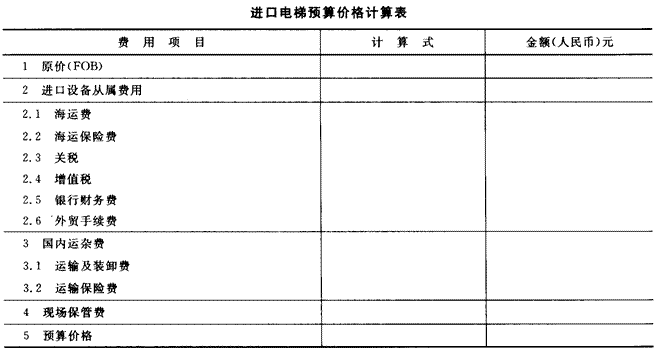 (2)请按下表计算进口电梯运至安装现场的预算价格(计算结果保留两位小数,美元对人民币汇率按1:8.3计算)。