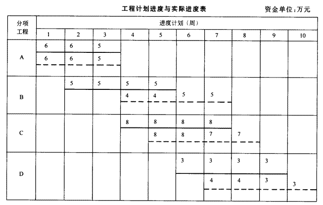 进度偏差=拟完工程计划投资-已完工程计划投资=54-36=18万元 即:进度拖后18万元