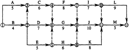 正确答案:C。答案解析:经计算,关键线路分别为:(1)→(3)→(4)→(7)→(10)→(12);(1)→(2)→(6)→(9)→(11)→(12);(1)→(3)→(4)→(6)→(9)→(11)→(12)。计算工期为35天。参见教材P139.