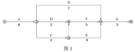 1、(0分) 【真题】某双代号网络计划如图1所示(时间:天),则工作D的自由时差是( )天。