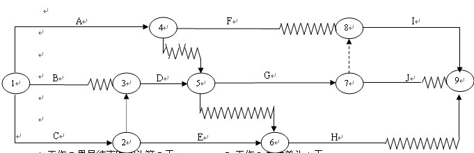A.箭线 B.节点 C.虚工作 D.线路 E.编号
