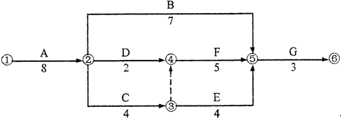 2、(0分) 某双代号网络计划如下图所示(时间:天),则工作D的自由时差是( )天。
