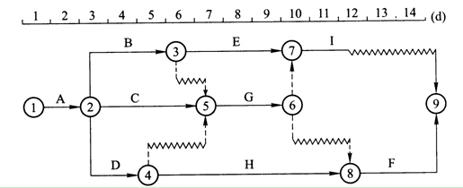 15.某分部工程双代号时标网络计划如下图所示,该计划所提供的正确信息有( )。