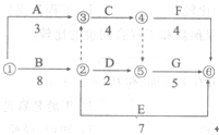 82.下图所示的双代号网络图中,非关键工作有( )。