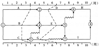 5.【2011年真题】某分部工程时标网络计划如下图所示,当计划执行到第3周末及第6周末时,检查得到的实际进度如图中的实际进度前锋线所示。该图表明( )。