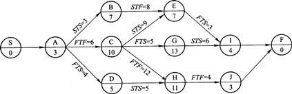 20、下图所示的单代号搭接网络计划(时间单位:天),其计算工期是( )天。