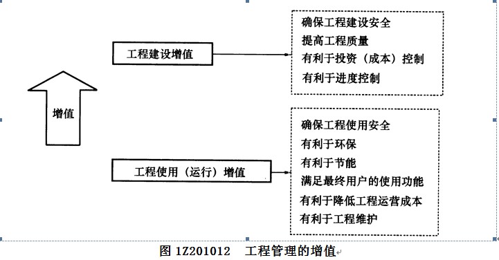 建设工程管理工作是一种增值服务工作,其核心任务是为工程的建设和使用增值,如图1Z201012所示。