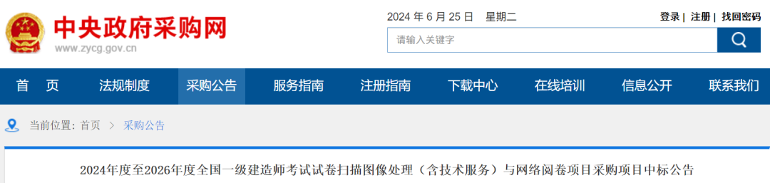 中央国家机关政府采购中心发布公告,2024年度全国一级建造师考试试卷扫描与网络阅卷,由以下6家负责:山东山大鸥玛软件股份有限公司、沈阳建筑大学、山东建筑大学、 重庆大学、 西安建筑科技大学以及长安大学。