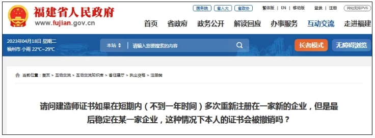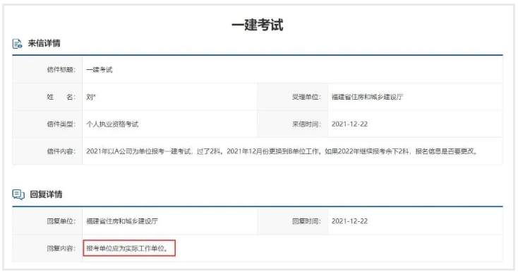 另外,福建住建厅此前也就一建考试中更换单位是否会受到影响,给出过具体解答。