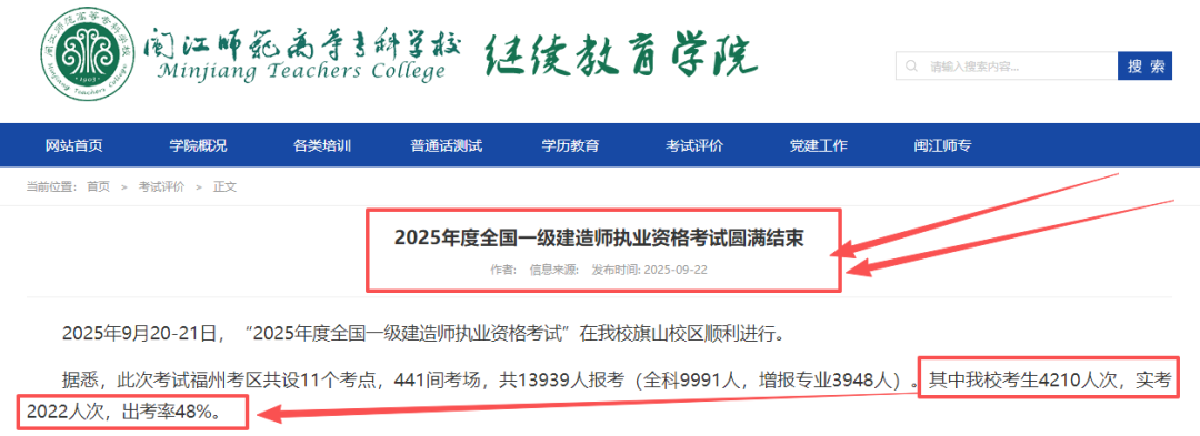 近日,某高校考点在完成2025年度全国一级建造师考试(9月20-21日)的组织工作后,公布了其考区的应考人数4210人,实考2022人次,该考区参考率仅有48%。