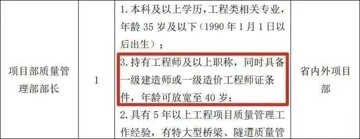 工学门类、管理科学与工程类专业博士学位+从事建设工程项目施工管理工作满1年。